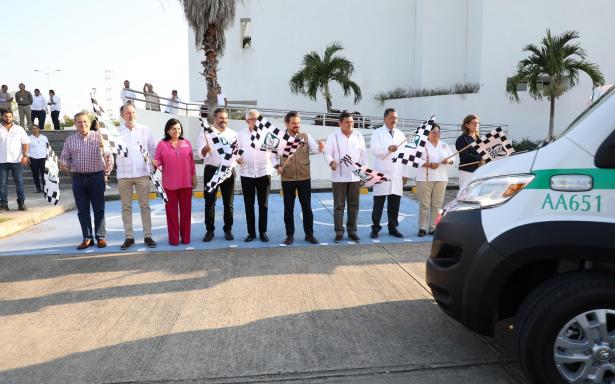 • El titular del IMSS y el gobernador de Tabasco dieron el banderazo de salida a 14 ambulancias que permitirán mejorar los servicios de traslado de pacientes.