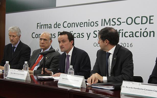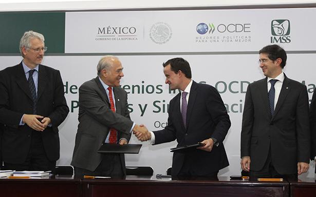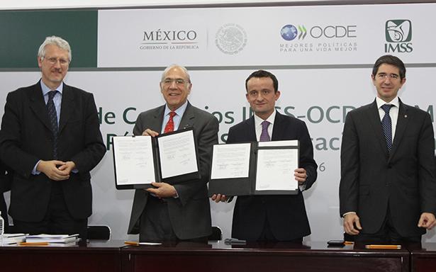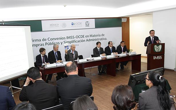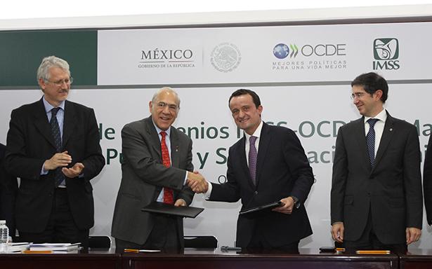 El Instituto Mexicano del Seguro Social (IMSS) y la Organización para la Cooperación y el Desarrollo Económico (OCDE) firmaron hoy tres acuerdos que tienen por objetivo reforzar la cooperación, la transparencia y las buenas prácticas en compras públicas, así como en la simplificación administrativa, compromiso del Presiente Enrique Peña Nieto y del Instituto para la adopción continua de las mejores prácticas internacionales.