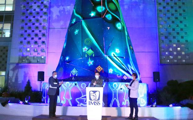 Al encender el árbol conmemorativo a la Navidad, el titular del Instituto señaló que este acto se realiza para reconocer amplia y públicamente a cada integrante de la Gran Familia IMSS, que ha hecho posible que el Seguro Social hoy esté de pie y represente la esperanza de vida de millones de mexicanas y mexicanos.