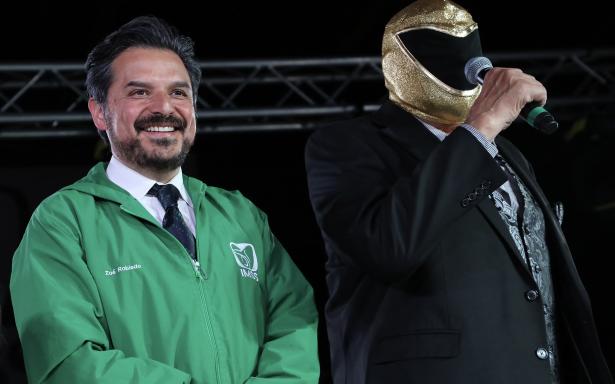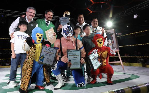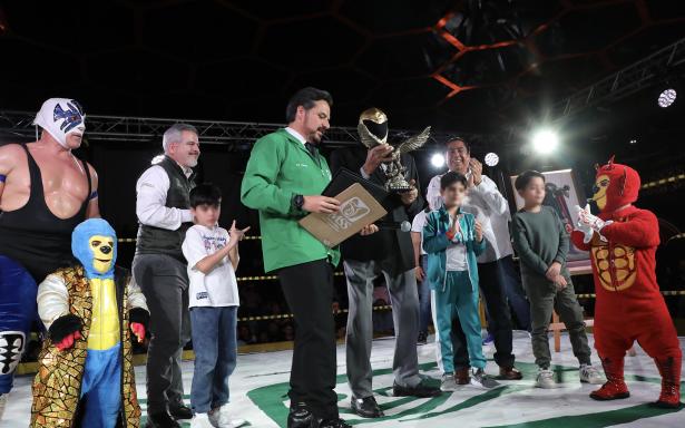 El director general del IMSS, Zoé Robledo, entregó un reconocimiento a “Tinieblas” por su trayectoria y a “Atlantis” por su labor altruista con niños con cáncer.