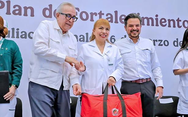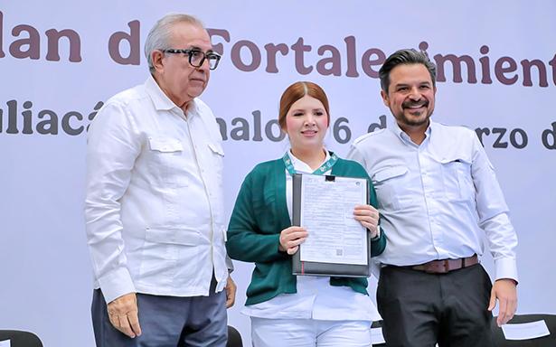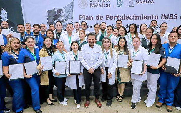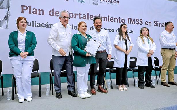 El director general del Instituto Mexicano del Seguro Social (IMSS), Zoé Robledo, y el gobernador de Sinaloa, Rubén Rocha Moya, encabezaron la entrega de 60 plazas definitivas a trabajadoras y trabajadores de distintas categorías en unidades médicas y operativas como parte del Plan de Fortalecimiento IMSS Sinaloa, un esfuerzo que busca consolidar la capacidad operativa, mejorar la atención médica y brindar certeza laboral al personal.