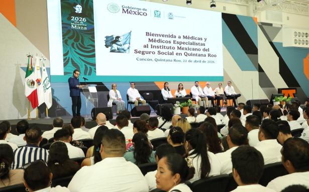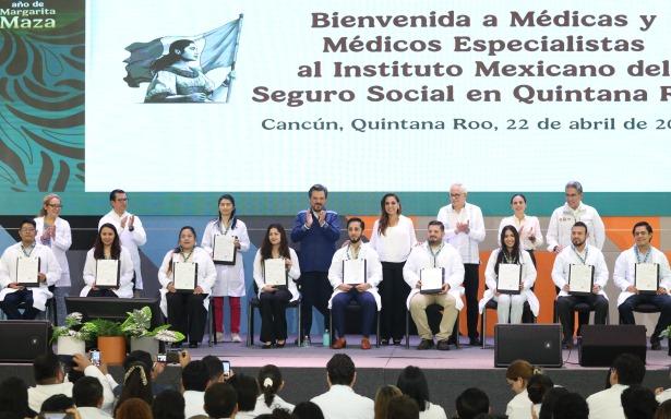 El director general del Instituto Mexicano del Seguro Social (IMSS), Zoé Robledo y la gobernadora de Quintana Roo, Mara Lezama Espinosa, encabezaron la bienvenida a 123 médicas y médicos especialistas que se suman a la estrategia nacional para ampliar la cobertura, reducir los tiempos de espera y garantizar una atención integral ante las necesidades de salud en la entidad.