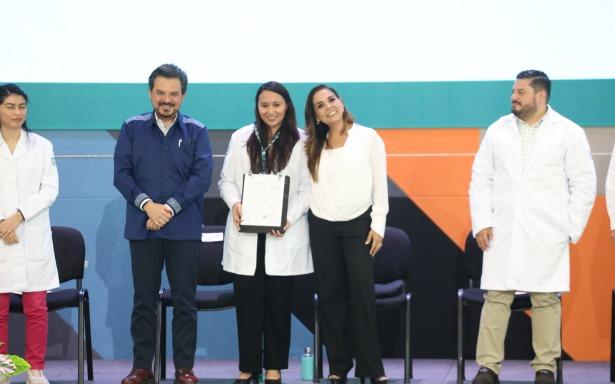 Durante esta ceremonia, las autoridades entregaron de manera simbólica 10 nombramientos a médicas y médicos especialistas quienes fortalecerán la atención médica en 19 especialidades en unidades y hospitales del IMSS en Quintana Roo.