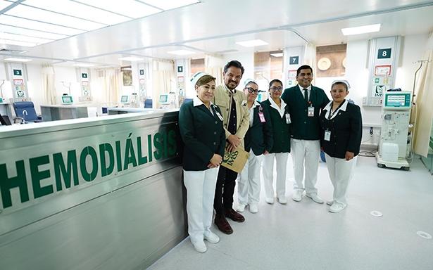 Zoé Robledo señaló que en el Hospital de Especialidades esta área fue remodelada por completo a favor de pacientes que requieren terapia de sustitución renal y que están hospitalizados en el tercer nivel de atención de esta UMAE, “son muy buenos equipos, las áreas se adecuaron y se ganó espacios para los residentes y el trabajo de todo el personal”.