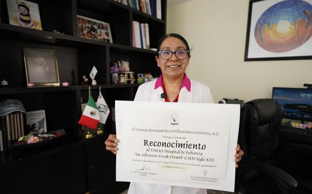 La doctora Estrada Rodríguez relató que, en reconocimiento al compromiso con la atención pediátrica, en noviembre de 2025 el hospital recibió la Insignia “Yaotl” por su destacada labor médica en la atención de menores lesionados durante la explosión de una pipa en el Puente de la Concordia en Iztapalapa, así como un reconocimiento del Consejo Mexicano de Certificación en Pediatría por el desempeño de sus médicos residentes en el examen de certificación.