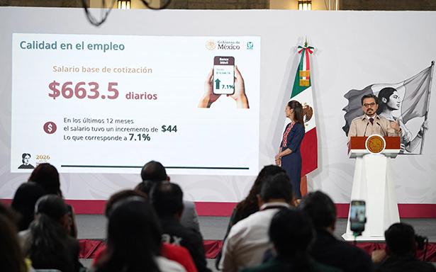 El director general del IMSS señaló que el promedio del salario de los 22 millones de trabajadores es de 663.5 pesos diarios, un incremento de 44 pesos los últimos 12 meses, es decir, el 7.1 por ciento del salario con el que cotizan los y las trabajadoras en un puesto formal.