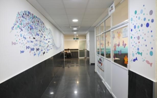 El mural “Pulso”, del artista Jorge Tanamachi, fue instalado en la entrada de este Hospital; alude a elementos históricos y símbolos que representan la salud y la enfermedad.